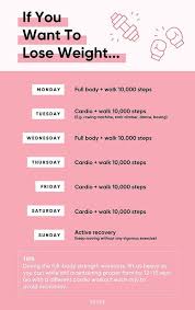 Plus when you are first starting your weight loss workout plan you ll start at the low end of that recommendation. The exercises listed in week 1 are a collection of basic moves that while also used by advanced lifters we feel are suitable for the beginner as well. Although they seem similar the key difference is that a jogging pace is generally between 4 6 mph 6 4 9 7 km h while a.